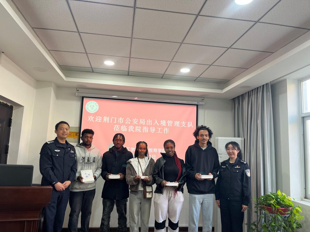 11月11日下午,荆门市公安局出入境管理支队支队长赵小荣一行5人莅临我院,就国际学生管理工作开展专题调研座谈。国际教育学院、保卫处相关负责同志及优秀国际学生代表参加会议。